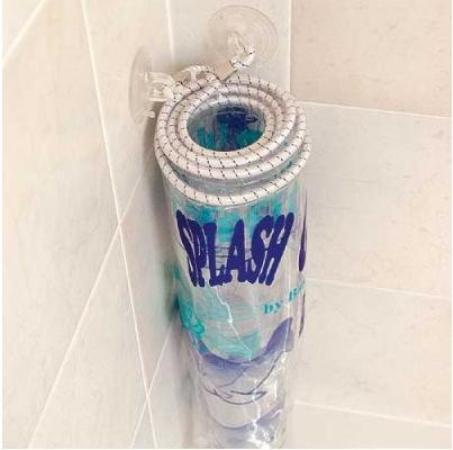 The splash guard attaches in seconds with industrial-strength suction cups, and removes easily for drying. Rolls up compact for storage. Fits tubs up to 60″ wide.