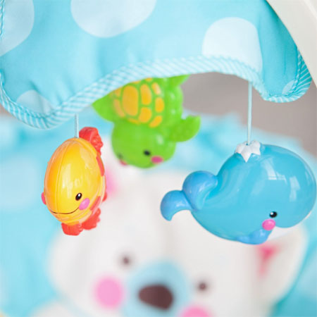 Give your babies a little piece of deep blue sky when enjoying their time on Blue Sky Cradle Baby Swing that has given the concept of baby swings a new look. The colorful appearance along with the comfy seat will keep your babies entertained with various playful options. The swing comprises your baby’s animal friends who are always playing over the head during the soothing swing both side-to-side and head-to-toe swings. Moreover, the delightful sounds or songs make the enjoyment complete. The colorful characters and mobile motions will be helpful for your babies to boost their visual tracking sills. The swing features complete safety by incorporating three-point restraint and includes a battery operated control panel to adjust the swing and sounds. [Click Here to checkout Blue Sky Cradle Baby Swing]