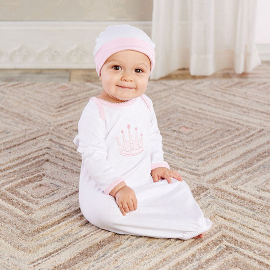 Baby is always a blessing, you can welcome a baby girl with this cute “Welcome Home Little Princess†2-piece Layette Set. This beautiful Layette set comes in light pink and white color, it features sweet white nightgown with link pink diamond pattern along with pink trim on neckline, cuffs, and border. You would also love that cute white matching cap…