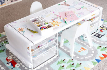 Modern Elfa Kids’ Mesh Coloring Table Features a Roll Banana Paper for Hours of Drawing and Coloring