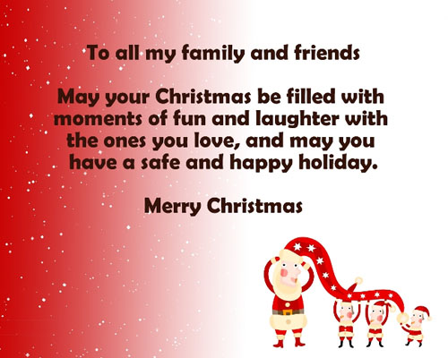 To all my family and friends, may your Christmas be filled with moments of fun and laughter with the ones you love, and may you have a safe and happy holiday.