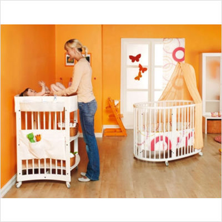 The Stokke Care Changing Table features unique open hourglass design which allows the user to adjust its height to use it in a higher or lower position, ensuring perfect changing environment for your baby. Moreover, this multi-functional changing table has fully adjustable storage containers and shelves to provide easy access to all necessary items for changing your baby, which allows enhanced control to the user and ability to focus on their constantly active child. This transforming table can take the shape of a small desk, larger school desk and practical bookshelf by adjusting different parts and is available in five different colors to choose from according to the user’ choice. [Click here to get details on Stokke Care Changing Table]