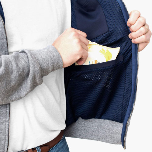 No more worries about changing diapers while dangling that diaper bag over your shoulder. This Dad Hoodie doubles as a diaper bag that allows you to hit the road in comfort. This hoodie can carry diapers, wipes, pacifier, bottle, and even your smartphone. It has breathable mesh lining that supports all baby essentials in your pockets without adding extra bulk. The fabric itself is stretchy to accommodate your growing bod, there’s also a pouch that stretch to keep bottles in place, no more spilled milk.