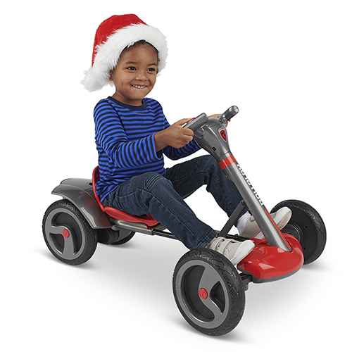What a cool electric Go Kart for your little one. It’s specially designed for little racers to allow them to cruise on a sidewalk. You can watch the excitement from their smiles and laughs. The 6-volt rechargeable battery powers the motor while your little driver can use the steering wheel to control the direction of front tires. When you think your little racer is ready for better speed, there’s a button on the handlebar that would propel this kart up to 2mph, release the button to bring this car to a safe stop.