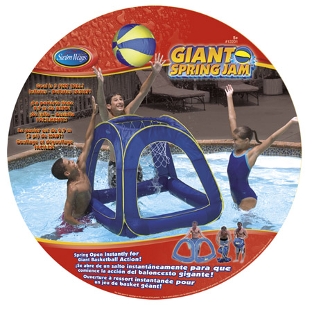 Giant Spring Jam Basketball offers exciting and fun water activities for your kids as well as you. This is an inflatable goal post where players can make scores through various movements in water. The goal hoop is 3 feet tall and the universal ball has 16 inch diameter that suits all range of players. Giant spring jam comprises spring and easy inflation technology to ensure easier and faster setup and storage. A durable bag will be offered to carry and store the product securely. Recommended age of use for this product is 5 or over. [Click here to get more details on Giant Spring Jam Basketball]