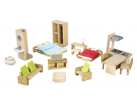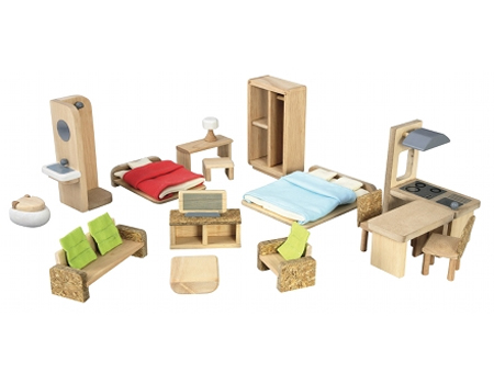 The green furniture set enables your kids to enjoy different playing ideas by featuring a set of beautifully designed toy figures. The set contains 5 fully furnished tiny rooms, a master bedroom, a children room, a living room, a kitchen and a bathroom, where your kids can organize the furnitures according to their taste. The playing set has been crafted from eco-friendly recycled materials and has been painted with non-toxic natural varnish. Aside from being a funful playing mate, it can encourage the imagination power and motor skill of your kids.