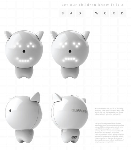 It’s important to teach children to differentiate good words from bad words at early age, this is where GUARDPIX language device comes in handy. Designed by Seo Donguk, this portable device can help you as parent to form desirable language habits of your children, especially when they are at the age of 2 to 3-year old. Because at this age, children have started to make friends and become chatty, it would be very easy for them to imitate adult conversation. GUARDPIX lets children know when someone says bad words by displaying unique facial expression just like emoticons. Too bad this device is just concept.