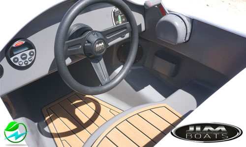 JimBoats 6.5ft mini boat is 100% electrically powered, releasing zero C02 emission. It features 3.3ft. width, 1ft. draft, a total weight of 121lbs (battery included), and it can accommodate kids and adults up to 70kg or 155lbs. A full charged battery can give you a running time up to 4 hours without any engine noise. This boat is unsinkable, thanks to four watertight compartments, there are 5 forward speeds with 1 reverse speed, but for safety, you can set cap speed throttle input to prevent your children from going too fast. Powered by a 12-volt OPTIMA® Deep Cycle high-performance Marine battery with 500W, 55lb thrust electric motor, JimBoats can provide children with thrilling experience on water.