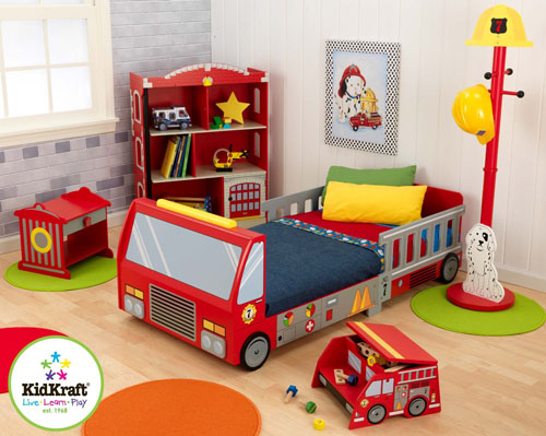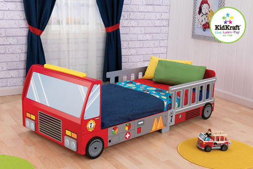If your kid’s dream is to be a firefighter, then Kidkraft Fire Truck Toddler Bed would be a great surprise for them. It’ll make every little boy or girl feels like a hero with their own fire truck. This kid’s furniture supports up to 50 lbs., it suits most standard crib size mattresses (mattress and bedding sold separately). Finished in bright, cheerful red, this bed would fit perfectly in any children bedroom, the ladder cut-outs on the sides function as a bed rail, clever design. There’s a storage compartment at the front where your children can keep their toys.