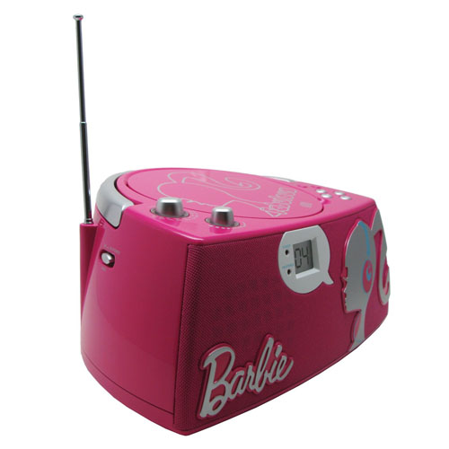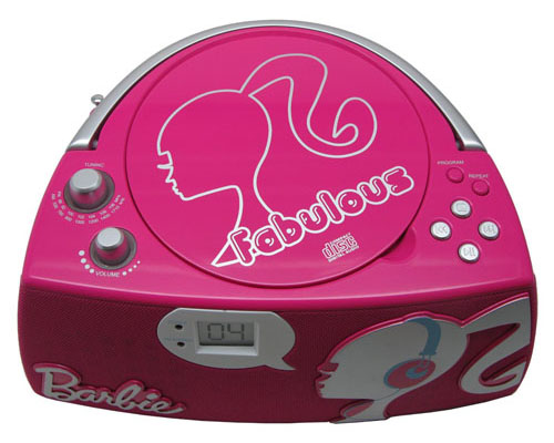 Barbie Glamtastic Boom Box is so girly in pink, it allows your girl to rock out fabulously. She can listen her favorite music using CD, CD-R, or CD-RW playback, or on her favorite radio stations and dance around in the room. The AUX feature allows her to simply connect any MP3 player to this boom box and read the track numbers from digital LCD screen. The bright pink color certainly will look good in any room, your little girl can also show it off to her friends, simply place the batteries in and carry this cool boom box anywhere, sleep over party maybe?