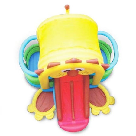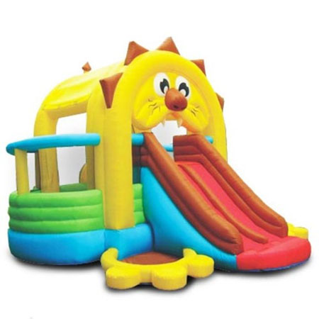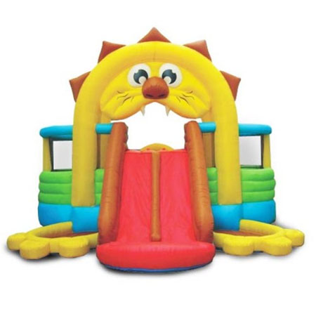 The lions den bounce house is a place where your kids will love to spend hours with different entertaining activities. This inflatable bounce has been crafted from heavy duty vinyl with a fun lion theme and is great for backyards and birthday parties. There are two separate playing areas in the paws of the lion where several kids can bounce at once. The roof gives protection during sunny days and the rear cushioned entrance ensures easy access. The front side contains a huge double slide of around 5 feet tall that can be accessed by an inflated rock wall. A powerful blower comes with the bounce house that can inflate it within minutes. Additional accessories are GFCI breaker, carrying bag, ground stakes and instruction manual. [CLICK HERE to checkout this bounce house]