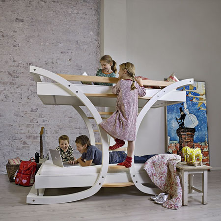 This Mimondo Wave kid’s bed comes from Gudiksen Design, a Danish design company operated by the brothers Karsten & Jakob Gudiksen. This modern kid’s furniture is focusing on new and innovative thoughts when it comes to design, production, and use of materials. Wave kid’s bed provides ultimate comfort and functionality for children. There are 2 models available, Wave 1 as a single bed, and Wave 2 as a bunk bed. For Wave 1, the bed is performed in veneered bentwood, hardwoods and with steps of ash. Obviously, only the highest quality of raw materials are being used. For Wave 2, the beds are made from moulded plywood, solid hardwood and MDF.