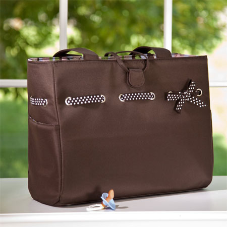 Mocha mint diaper bag is stylish enough that can be taken to anywhere with pride, keeping the diapers and other baby accessories inside safe and sound. It features five interior pockets that ensure even the smallest accessories to be kept organized, while the outer bottle sleeves can store your babies drink within easy reach. The chocolate brown exterior of the diaper bad is accented with polka-dotted ribbon ties, making it a really fashionable bag for you. The diaper bag can be maintained and cleaned up easily with a dump cloth only.