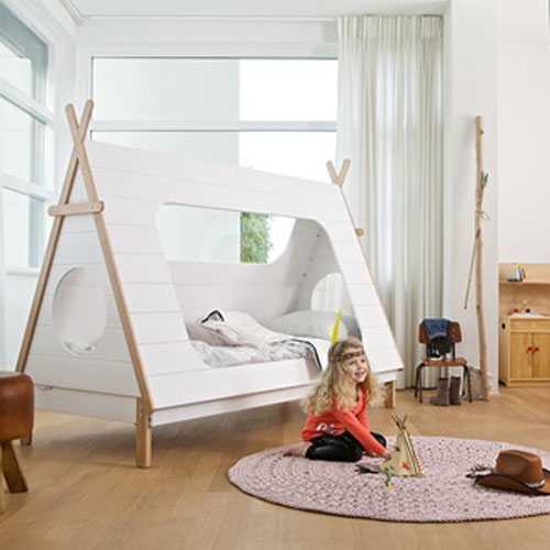 Woood Kids Teepee Cabin Bed Is Made from Solid Pine with White Veneer