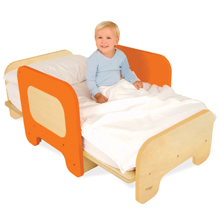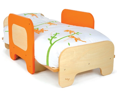 The smart and functional toddler bed features the ability to be converted to a comfortable chair for extend using and place it back again when it’s sleeping time, ensuring safety for your little one. This attractive and durable bed has been made of high-quality wood, protected with non-toxic clear finish. The size of the bed is perfect for your kids and any standard size crib mattress can fit on it. The side rails prevents your kids to rolling out and the comfortable pad of the cozy chair offers fashionable comfort. The excellent color combination of the bed will not only encourage your kids to use them, but also can boost the decor of the toddler room.