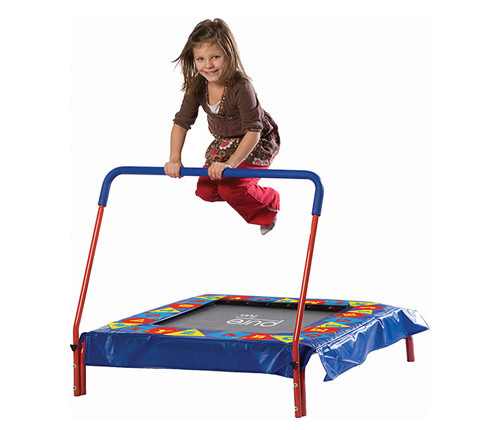Made of steel frame, this small trampoline when used properly can last for years. The black square-shaped jump surface comes with 30 springs that offer great bouncing experience for kids. The four sturdy steel legs provide great stability on flat surface. Once you set this up, your kids would love it and can’t stop jump on it. This jumper has dimensions of 33-inch (H) x 36-inch (W) x 36-inch (D) and weighs around 20.68lbs. Buy this for your children, it’s going to be a great exercise for them. One thing that we think can be improved by the manufacturer, the foam cover of the handle should be thicker and more durable since children can be pretty rough when playing, it comes off pretty easy. [Click Here to read more reviews about Pure Fun Kids 36-inch Preschool Jumper]