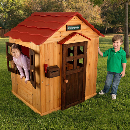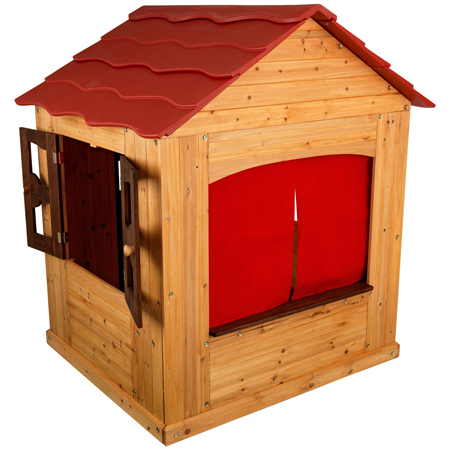 The red roof outdoor playhouse features an ultimate fun place for your kids with various playful ideas and alternatives. It has been made of water-resistant wood and features a charming cabin-like look and a red roof that makes a nice contrast to the smooth finished walls and dark finished side windows along with the front door. The mailbox next to the door comprises a red flag to notify the children about a new mail arrival. Moreover, there’s a corner sink and a chalkboard over the door where your kids can write down their name and address perfectly. Each side of the house contains a shuttered window that gives it more enhanced aesthetics and combined with other functionalities, help your kids run wild with their imaginations. [Click Here to Get Red Roof Playhouse Order Info]