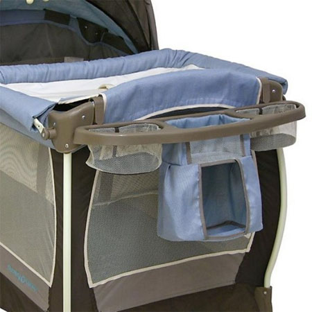 Skylar is a stylish, functional and portable play yard by babytrend, featuring a safe and playful place for your baby to sleep, play or just rest. Keep the play yard inside your home, take it in your car when going out or even leave your baby with it to his grandma when attending a relative’s party, in all aspects, your baby will remain happy with great fun. The comfortable bassinet is perfect for a quick nap or an all night slumber, also the included canopy with plush toys offer various playing alternatives when they are awake. Moreover, it comprises an elevated comfortable padded changing table that reduces the hassle of diapering and flips away when not in use. It comprises large wheels with brakes which will allow you to push the play yard from one room to another conveniently. An input for MP3 players is also available to play the favorite songs of your baby.