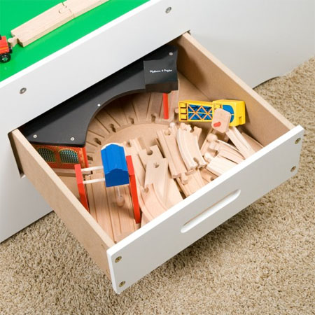 Let your kids become more active with train table with railway set that comes with a wide variety of engaging and exciting playing alternatives in many different ways. This table can be used as an activity center for the kids to perform art activities or building toy blocks by removing the railway set. When they are in mood of playing something more thrilling, they can easily set-up the railway set to enjoy the multi-directional movements of the train over mountains or through the tunnel with great fun. Crafted from high quality engineered wood and polished with delightful colors, this play set can become your kid’s best mate during their leisure. Moreover, the slide out single drawer can be perfectly used to store essential accessories within easy reach. [Click Here to Get Activity Table Shop Order Info]